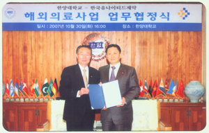 양측은 한양대 류마티스병원(원장 배상철) 비전인 ▲환자·의사에게 모두 열린 사랑을 실천하는 병원, ▲류마티즘 치료분야의 4차 전문병원 ▲세계속의 초일류 류마티즘 전문병원 지향에 근거해 해외진출을 모색 중 초기 진출지로 베트남 호치민이 가장 적절한 것으로 판단했다. 호치민은 총인구 8천만명중 10%에 해당하는 800만명의 많은 류마티스 질환 환자가 존재하는 반면 류마티스 관련 전문의료인력은 매우 미미해 급속한 경제성장과 비교적 한국에 대해 우호적인 분위기.