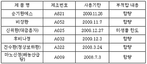 - 함량·미생물 한도에서 부적합 판정…반품 촉구