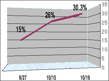 복지부가 지난 15일 한나라당 문희 의원에게 제출한 자료에 따르면 10월5일 성분명 처방률은 26.3%. 즉 2주만에 30%를 돌파 한 것이다. RN