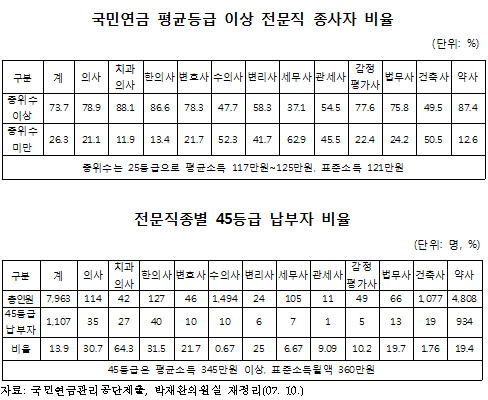 - 박재완 의원, 전문직 종사자 국민연금 지역가입자 분석