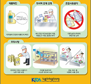 식약청은 "집단 급식소들은 식기류나 기구를 사용하기 전에 세척제로 오염물을 제거해야 한다"며 "살균소독제는 표시사항을 지켜서 사용하고 남은 소독액은 재사용하지 말아야 한다"고 밝혔다.