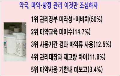 약사감시 업무를 담당하는 보건소 관계자는 "마약·향정약 관리 점검은 장부와 실재고량 차이를 체크하는 경우가 많아 실제 단속에서 점검부 관리실태가 노출될 가능성이 가장 크기 때문에 이같은 결과가 나왔을 것"이라고 분석했다.