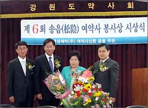 이날 시상식에는 김준수 강원도약사회장을 비롯해 하석균 부회장, 김경숙 감사, 박성태 여약사신문 사장, 이양구 동성제약 사장 등이 참석해 자리를 빛냈다.