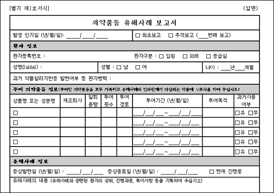 약사회는 16일 각 시도지부에 발송한 공문을 통해 “식약청이 시판 후 부작용 보고 활성화를 위해 일선에서 환자에게 의약품을 처방& 8228;투약하는 의약전문인의 적극적이고 능동적인 참여를 요청해왔다”면서 “의약품 등 유해사례 보고서식을 통해 회원들이 적극적으로 부작용 사례를 보고할 수 있도록 연수교육 및 세미나 개최시 교육 및 홍보를 해달라”고 당부했다.