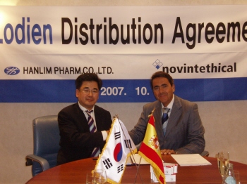 한림제약이 지난 10월 3일 이태리 밀라노 Hilton 호텔에서 스페인 Novinthethical사와 자체 광학 분리기술로 개발한 개량신약 로디엔정에 대한 멕시코, 브라질, 아르헨티나 등 중남미 3개국의 수출 계약을 체결했다고 15일 밝혔다.
