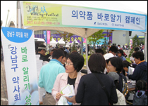 강남구약은 지난 13일 오전 9시부터 11시까지 서울무역전시장 야외행사장에서 개최된 ‘강남구민 워킹페스티발’에 참가해 지역주민 2,000명을 대상으로 자체 제작한 휴대용 구급함과 약물오남용예방 유인물을 나눠주며 의약품 바로알리기 캠페인을 개최했다.