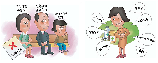 식약청은 "체질이 약해 평소 땀을 별로 흘리지 않거나, 식은땀을 자주 흘리거나, 성격이 급하고 활동량은 많은데 불면증이 있는 사람에게는 투여가 금기로 돼 있다"고 설명했다.