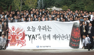 집체교육은 삼성제약의 신제품 에너지 드링크 ‘야(YA!)’의 성공 기원과 4/4분기 영업 목표 달성을 위해 진행됐다.