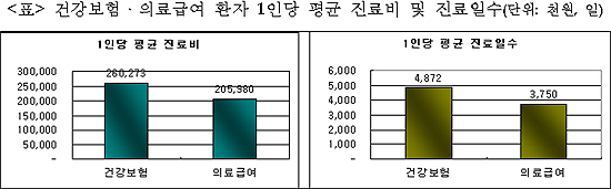 - 1인당 진료비 20%-진료일수 23% 건보환자가 더 많아