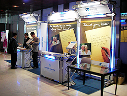 또 비교적 넓은 홍보공간을 확보해 동영상으로 '타이커브'의 작용기전을 안내하고 현재 진행 중인 임상현황 등을 전시했다. 다른 벽면에는 멀티스크린을 통해 GSK의 항암제 파이프라인과 향후 비젼을 제시하기도 했다.