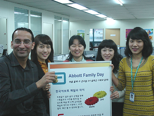 한국애보트는 매월 둘째 주 금요일 직원들이 1시간 일찍 퇴근해 가족과 더 맣은 시간을 보낼 수 있도록 독려하기 위해 ‘애보트 패밀리데이’를 실시하고 있다고 10일 밝혔다.