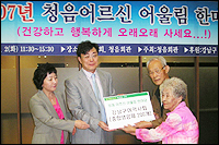 강남구약은 2일 낮 청각장애인 복지회관인 청음회관이 역삼동 화평교회에서 개최한 '노인의 날 청음 어르신 어울림' 행사에 참석, 노인들에게 영양제를 전했다.