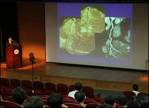 이번 심포지엄은 CT 관상동맥조영술을 큰 주제로 삼성서울병원 영상의학과 최연현 교수, 가톨릭대의료원 영상의학과 정정임 교수, 부천세종병원 김양민 교수가 각각 연자로 나서 최신 지견을 발표하고 토의하는 시간을 가졌다.