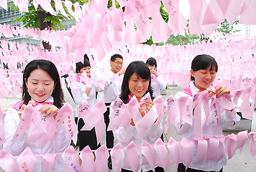 이날 행사는 유방암 환자의 완치를 기원하기 위해 마련된 것으로 ‘희망의 메시지’를 담은 핑크리본 1만개가 서울 광진구 나루아트센터 앞 가로수에 내걸렸다.