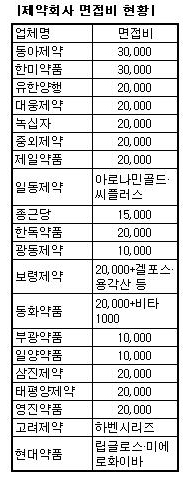 반대로 광동제약과 부광약품, 일양약품 등 3곳이 1만원의 면접비를 주고 있었다.
