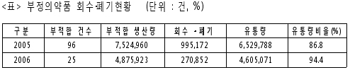 - 식약청 집계...05년-87%, 06년-94% '미회수'
