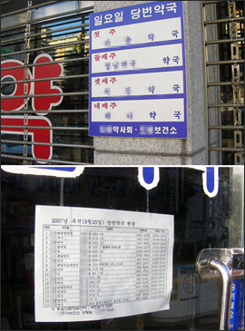 그러나 각 구 약사회에서 지급한 추석 당번약국 안내물을 부착하지 않은 약국이 사이사이 발견됐다.