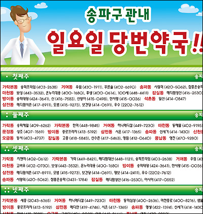 안내 포스터는 주단위 별로 일요일 당번약국을 모두 안내하고 있어 다른 당번약국 포스터와는 차별화를 뒀다.