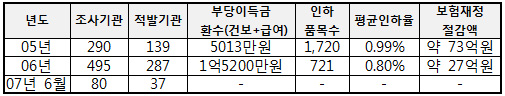 실거래가 위반으로 인하된 품목수는 2005년 1,720 품목, 2006년 721품목으로 총 2,441품목 이었다. 평균 약가 인하율은 0.89%였다.