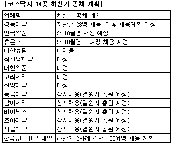 - 삼천당제약 등 4개사 미정...채용규모 예년 밑돌아