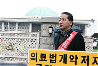 범의료 의료법비상대책위원회(범대위)는 3일 정부의 의료법 전부개정법률안의 국회 통과를 저지하기 위해 다시 국회 앞 1인 시위에 돌입했다.