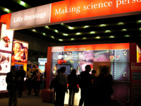 관람객들의 눈길을 사로 잡은 것은 역시 로슈와 아스트라제네카, 릴리 등 기존 항암제 시장을 리드하는 업체들의 홍보부스.