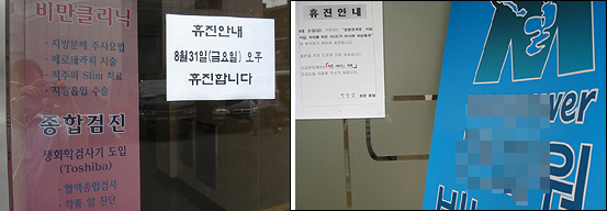 내과와 외과진료를 보고 있는 S의원은 이날 오후부터 휴진안내문을 내걸고 휴진에 돌입했으며, 간호사는 2시30분 퇴근했다고 인근 약국가는 전했다.