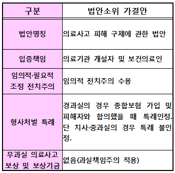 먼저 법안 명칭은 시민단체 청원안인 '의료사고 피해 구제에 관한 법안'으로 확정됐다.