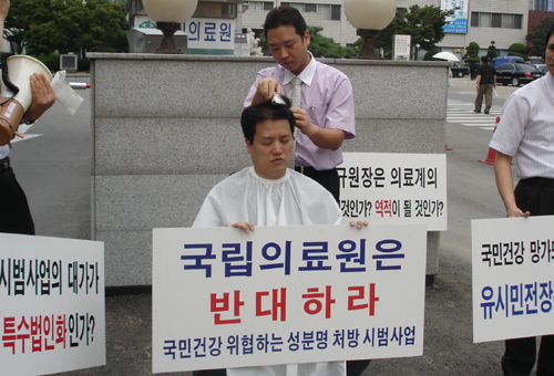 특히 이 날 항의방문에 앞서 국립의료원 정문에서 벌인 항의시위에서 좌 이사는 성분명 처방 결사 저지의 의지를 밝히기 위해 삭발을 단행했다.
