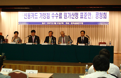 한국금융연구원은 23일 서울 YWCA 4층 강당에서 신용카드 가맹점 수수료 원가산정 공청회를 열고 협상력이 낮은 영세가맹점에 대한 수수료 인하가 필요하다고 밝혔다.