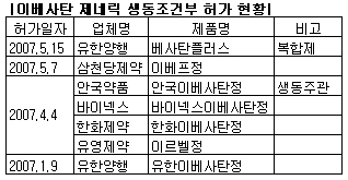 그러나 유한양행을 비롯해 안국약품 등 업체들은 올해 초부터 이베사탄 제네릭에 대한 생동 조건부 허가를 받으면서 경쟁국면을 조성하고 있다.