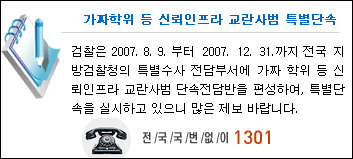 - 검찰 '1301' 전화활용...1약사 1신고 운동으로 조직화