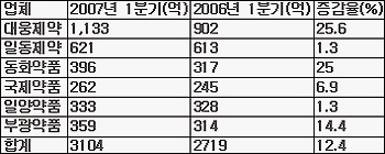 - 대웅-동화 25%대 신장...일동제약, 이익률 감소