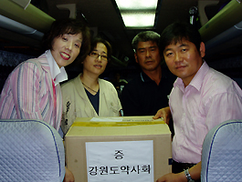 도약사회는 8일 춘천시 봉의초등학교 강원도농아인협회 수련회 출발지에서 농아인들에게 의약품을 지원했다.