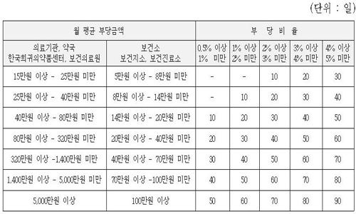 성모병원의 현지조사가 6개월 분을 대상으로 했다는 점을 감안하면 현재 건강보험법 시행규칙에 따라 월평균 부당금액이 5,000만원 이상일 경우 업무정지 80일은 부당비율 3~4%에 해당하기 때문이다.