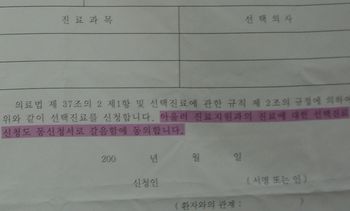 실제로 상당수의 병원에서는 환자가 진료 및 진료지원과별로 선택진료를 선택할 수 있는 법적 서식과 달리 일괄적으로 모든 선택진료비를 동의케 하거나 진료 시 선택한 의사가 이를 대신하는데 동의하는 식의 신청서를 마련하고 있다는 것이 운동본부의 설명이다.