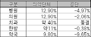 결국 의약단체는 공단과의 협상을 통해 환산지수 결정뿐만 아니라 타 단체에 비해 높은 인상폭을 얻어내기 위한 이전투구를 펼칠 수 밖에 없다는 분석이 지배적이다.