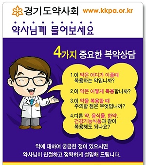 도약사회가 제작한 포스터에는 친근한 이미지의 약사 캐릭터가 등장, 4가지의 복약상담 포인트를 알기쉽게 설명하고 있다.