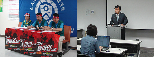 노사 양측은 10일 오후 2시 30분 잇따라 각각 기자회견을 갖고 현 교섭안에 대해 수용할 수 없다는 입장을 밝혔다.
