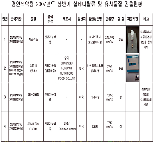 - 경인식약청, 상반기 검사현황...타다라필·요힘빈 등