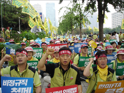 - 노조원 600여명 국회 앞 출정식, 파업규모 확대 시사