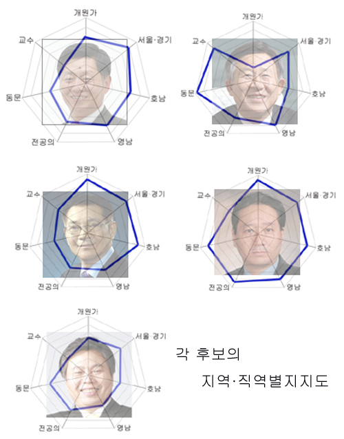 각 후보 직역별·지역별 기반 엇갈려