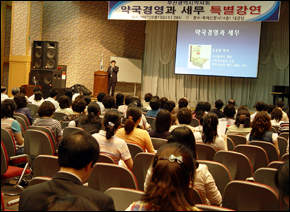 이날 강의는 올해 개정된 세법에 따라 변경되는 약국세무 업무 중의 사업용 계좌·복식부기 의무기장 등을 주제로 진행됐다.
