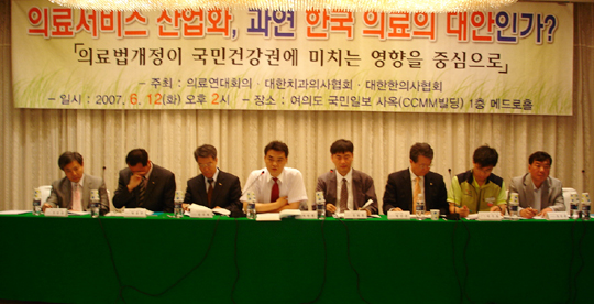 12일 여의도 국민일보 사옥 1층 메트로홀에서 개최된 ‘의료서비스 산업화 과연 의료의 대안인가’ 토론회에서 의료계와 약계, 시민단체는 의료의 ‘상업화’ 변질에 대한 우려를 표명한 반면, 병원계와 복지부는 환자 이용편의 증대, 규제완화 등 정부안의 당위성 측면을 강조했다.
