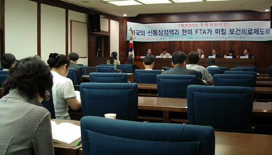 이에 앞서 복지부 전만복 국장은 우석균 보건의료단체연합 정책실장의 ‘한미FTA협상 평가’라는 발제문에 대해 “독립적 이의신청기구는 원심번복 기능이 없으며, 그것이 협정문에 표현돼 있지 않다고 해서 원심을 뒤집을 수 있다는 의미는 아니다”라고 설명한 바 있다.