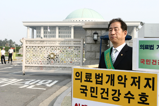 이날 변영우 대한의사협회 의료법비상대책위원회 위원장과 김영주 대한치과의사협회 보험이사는 국회 정문 앞에서, 김기옥 대한한의사협회 수석부회장·임정희 한국간호조무사협회 회장은 국회 남문 앞에서 오전 8시부터 9시까지 시위를 벌였다. 이번 1인 시위는 4개 단체 대표 1명씩 참여해 오늘부터 7월 3일까지 토요일, 일요일 및 공휴일을 제외한 평일 오전 8시부터 1시간동안 국회 정문과 남문에서 2개조로 진행된다. 특히 11~15일에는 의협회장 보궐선거에 출마한 각 후보가, 18~22일에는 각 후보 캠프에서 1명씩 의협 대표로 참여해 의료법개악 저지에 힘을 보탠다.