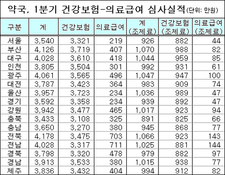 - 심평원 1분기 통계지표 분석...전체약국 한 곳당 월 977만원 꼴