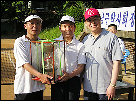 테니스 동호인들이 참석한 이날 대회에서 영예의 우승은 심관섭(청담약국)·유영필(광성약국)조가 차지했다.