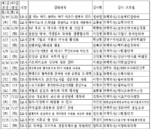 강의는 강북과 강남으로 나눠 이루어진다. 강북은 19일부터 보령제약 17층 강당에서, 강남은 22일부터 대한약사회 4층 강당에서 첫 강의가 시작된다.