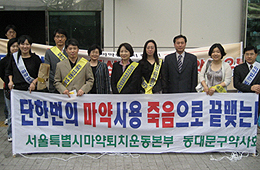 동대문구보건소, 의약인 단체, 서울약령시협회와 합동으로 실시된 이날 켐페인에서 약사들은 홍보 팜플렛을 배포하며 마약류 폐해의 심각성을 알렸다. 캠페인에는 구보건소 전준희 소장을 비롯해 의약인 단체장과 회원 40여명이 참했고 구약사회측에서는 왕흥덕, 김명숙, 유기호 부회장, 전경숙, 김종율, 권청진 위원장, 전재준 사무국장이 참석했다.